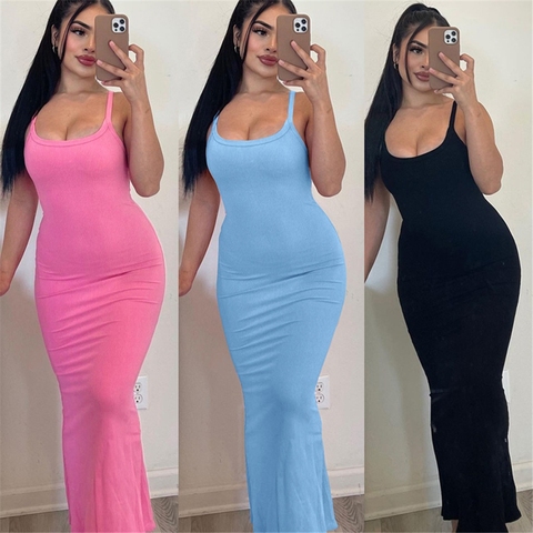 ZHEZHE Fashion 2024 Summer Sleeveless Simple Sweet Sexy Elegant Square Neck Solid Color Casual Maxi Dress