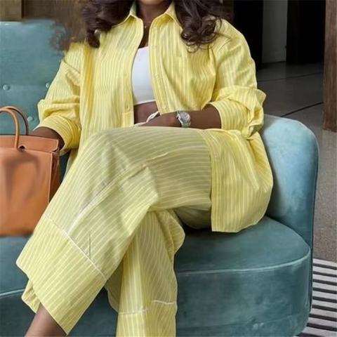 ZHEZHE moda 2024 autunno Casual Lounge da donna camicia Cardigan a maniche lunghe e pantaloni Set 2 pezzi