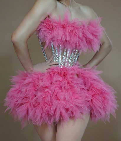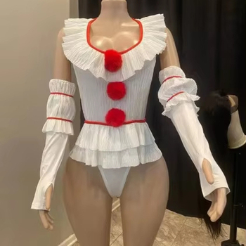 ZHEZHE pagliaccetti da donna di Halloween Y2K con scollo rotondo profondo a strati arricciato orlo palla di piume Slim Fit tute Cosplay costumi